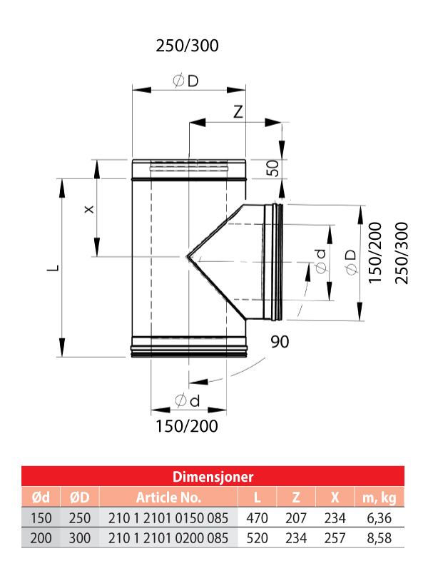 | 620046 DW50 Tstykke 90Gr Teknisk |